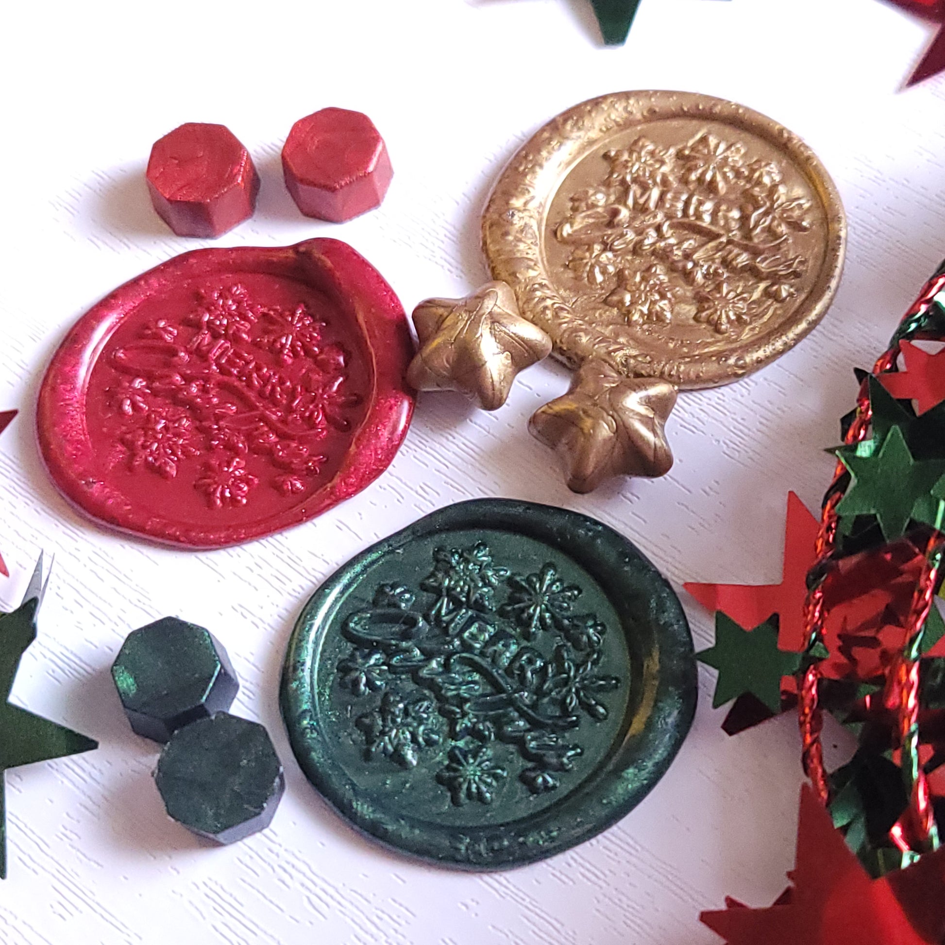 1 x single Christmas Edition Adhesive Wax Seals - Individually hand poured and stamped. (Choose your colour & design)