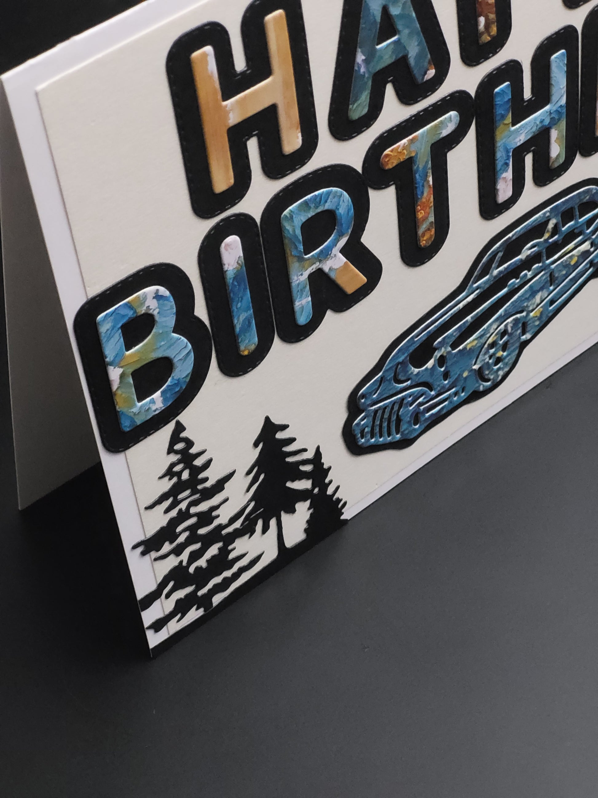 A5 One of a Kind Vintage Car forest Happy Birthday blank card