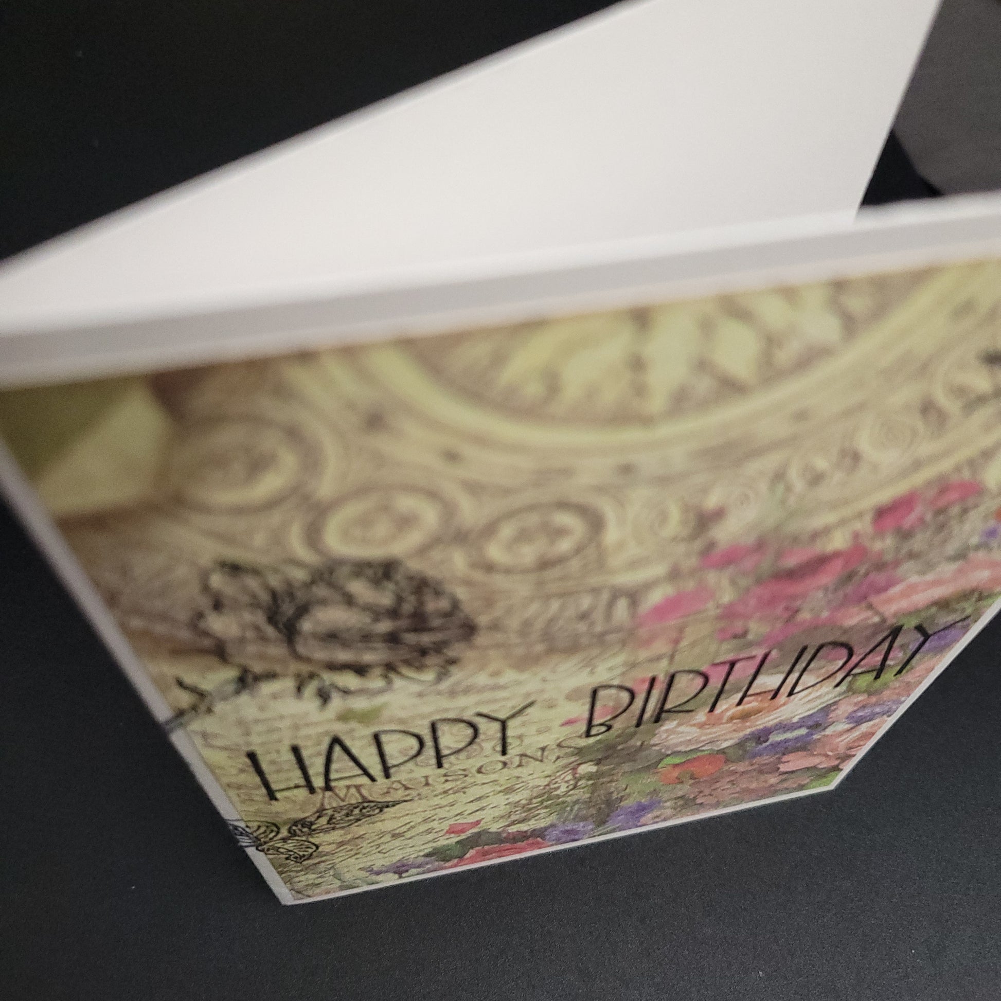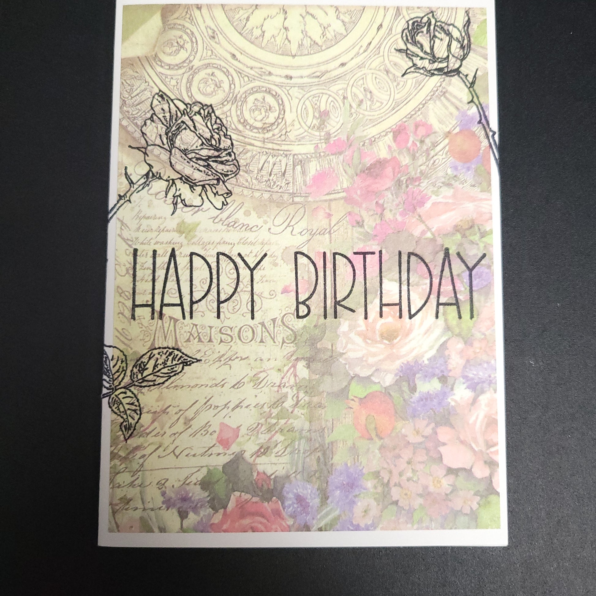 1x French Garden hand stamped blank Happy Birthday greeting card.