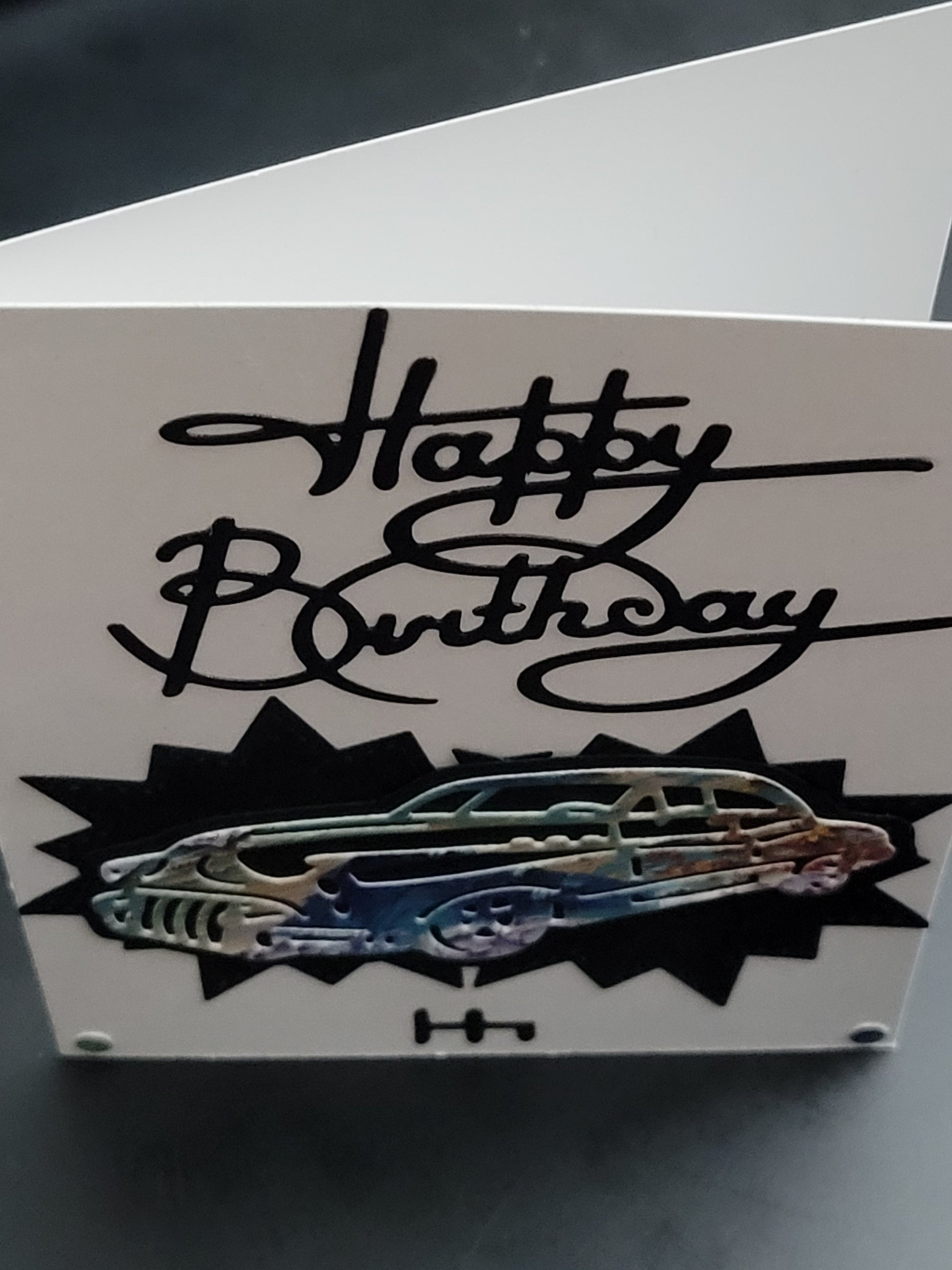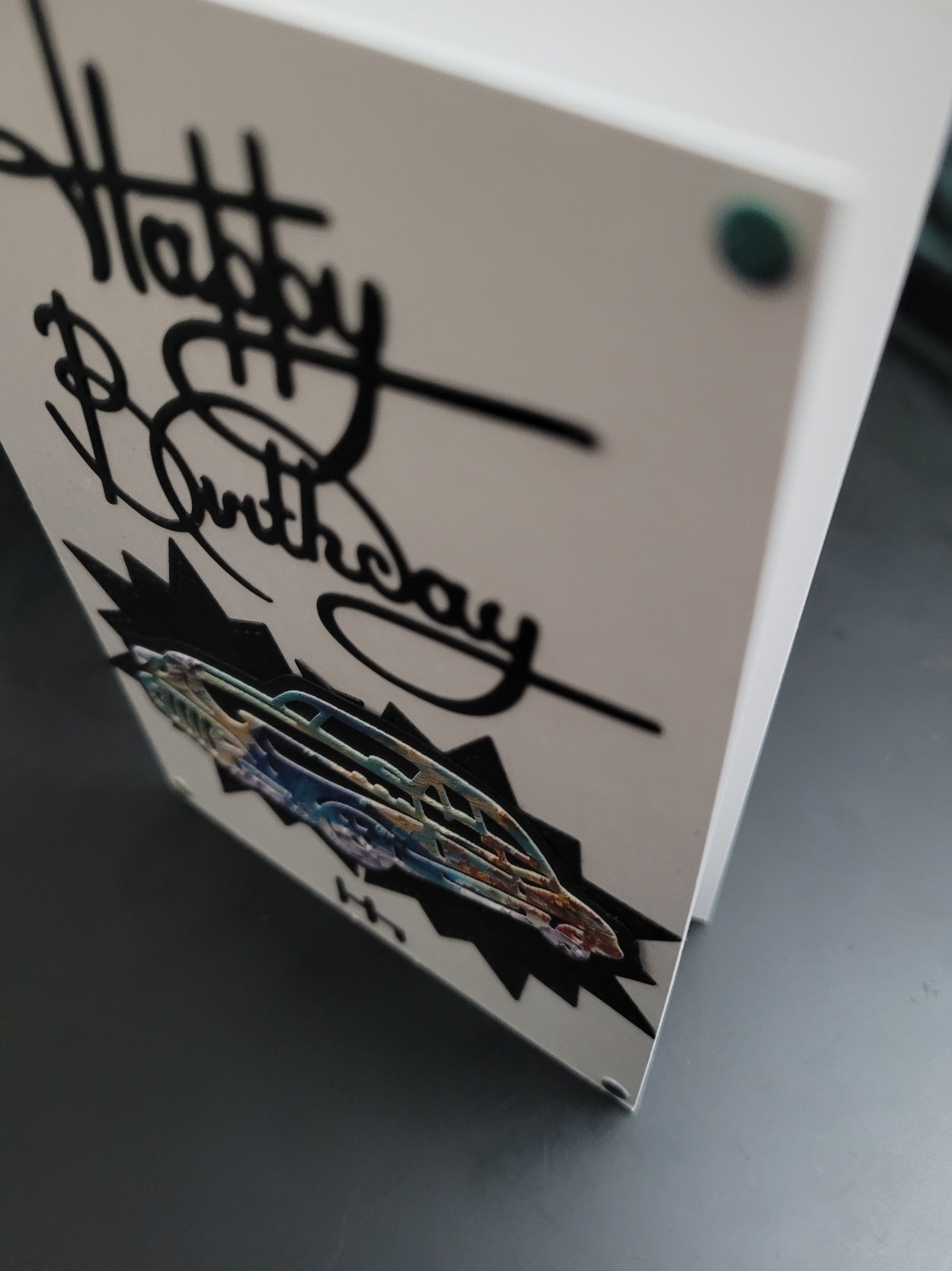 A6 One of a Kind Vintage Car Starburst Happy Birthday blank card