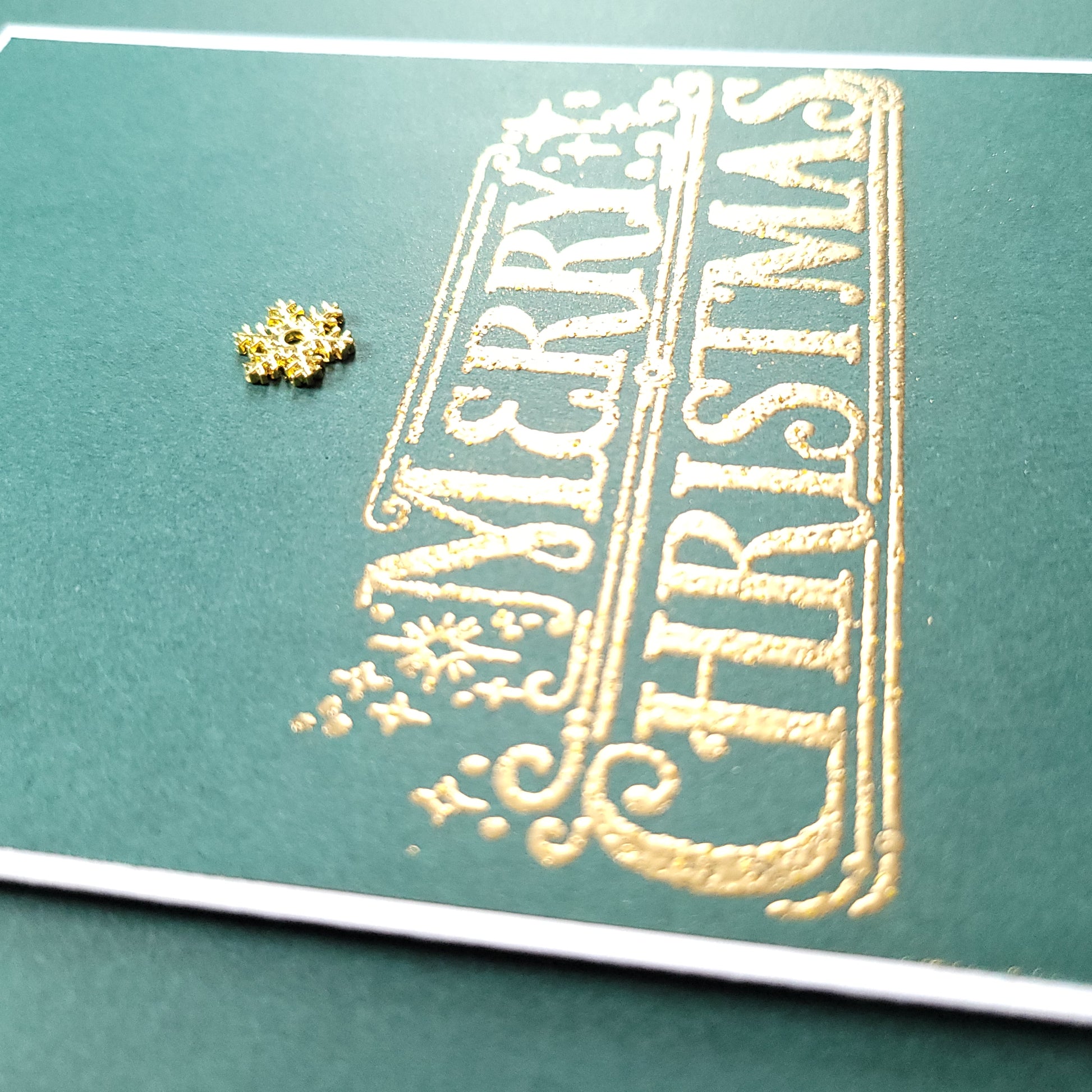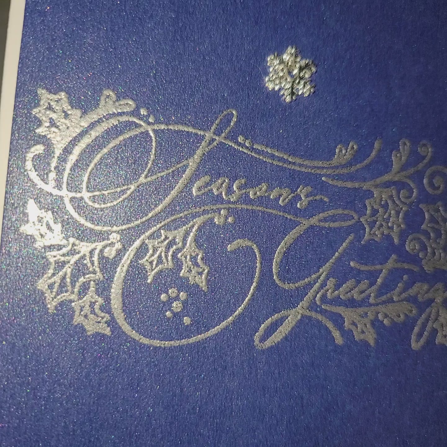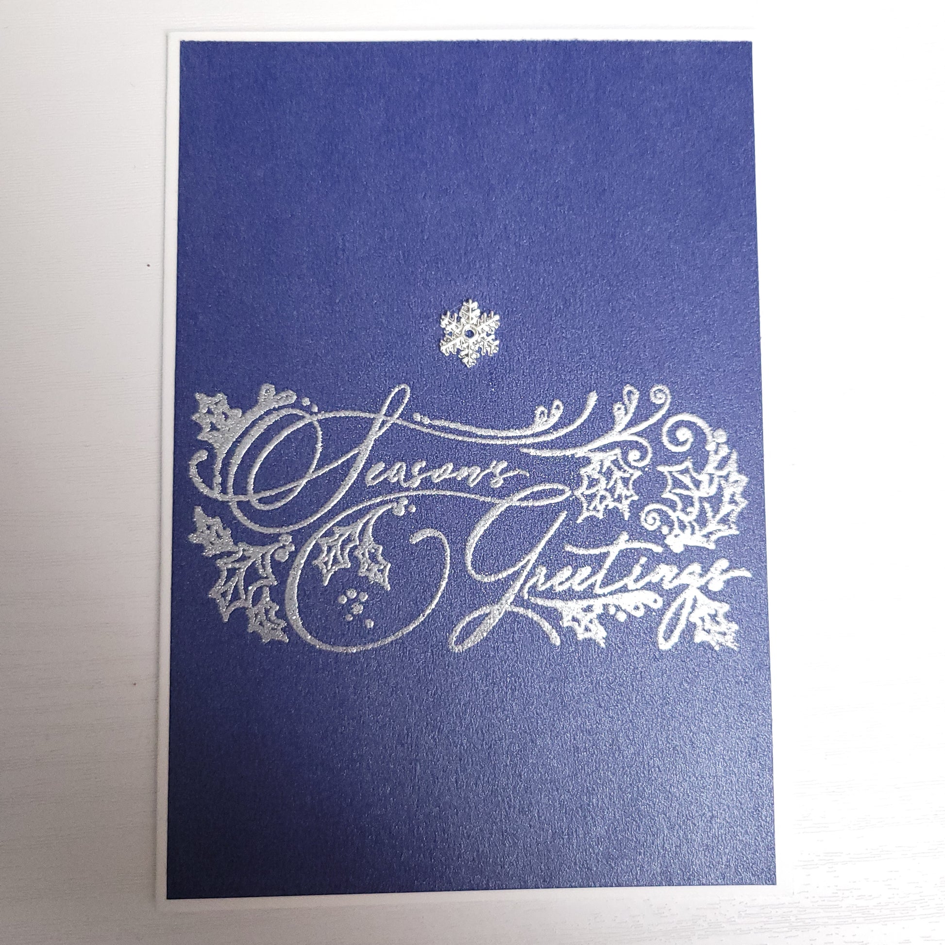 Choose from Green & Gold Merry Christmas or Blue & Silver Season's Greetings