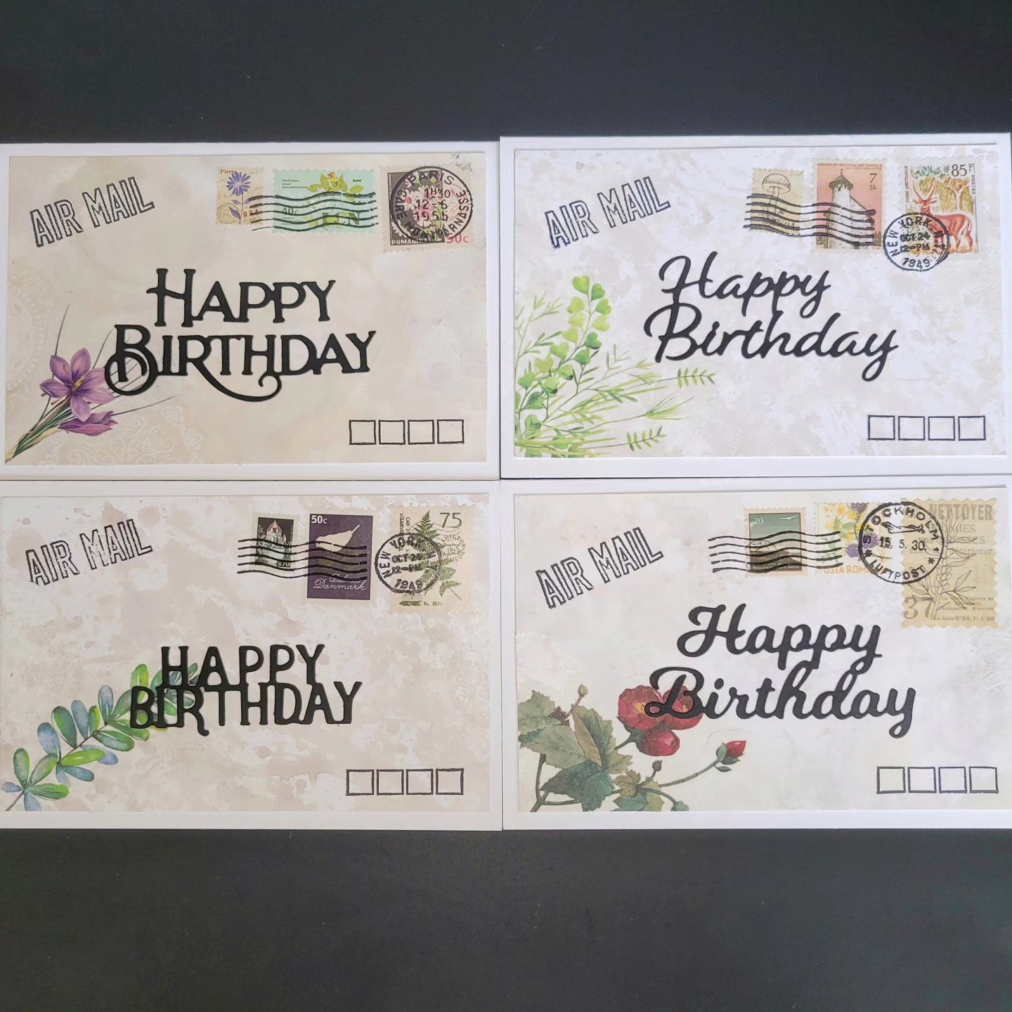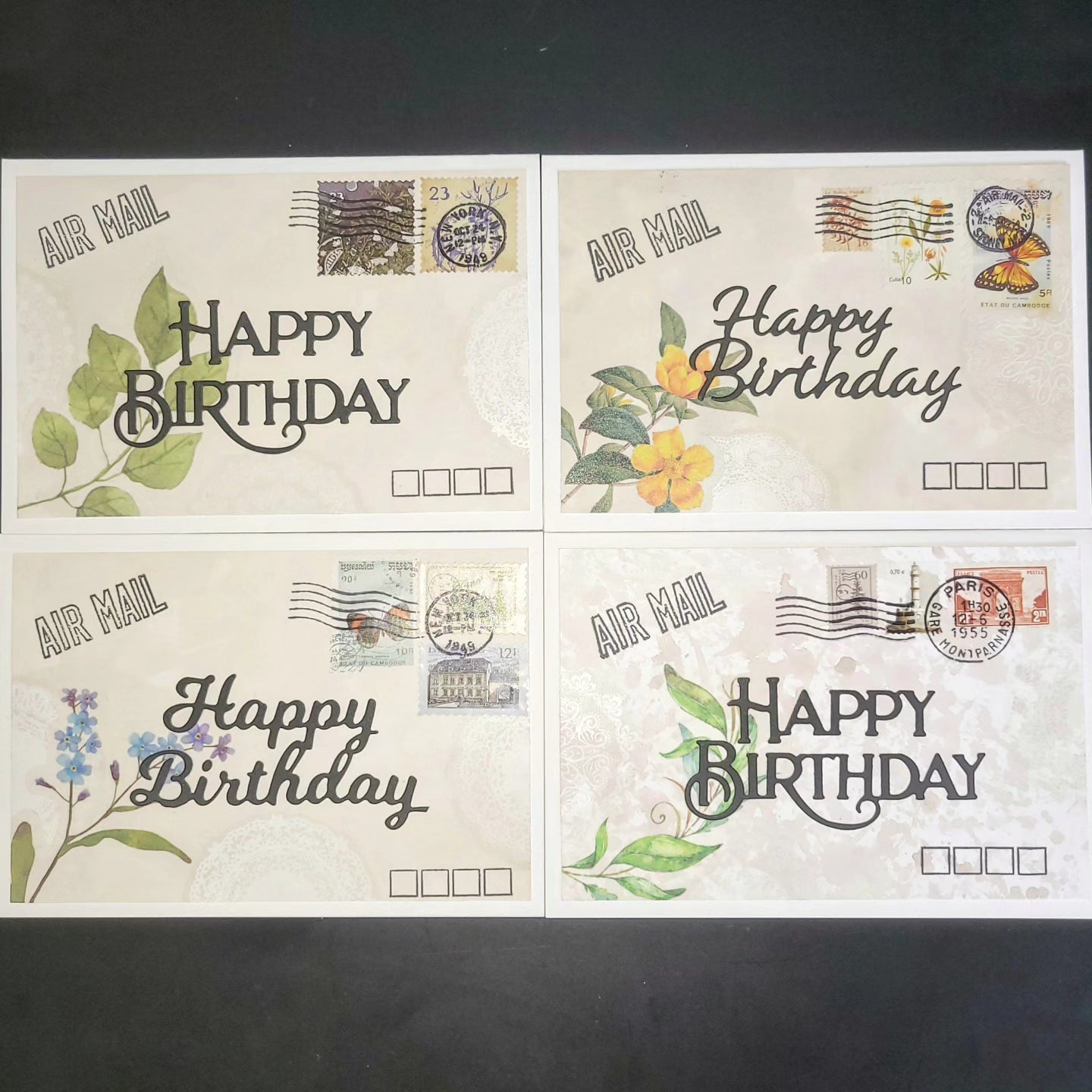 A6 Tea dyed Vintage Envelope Look Happy Birthday blank cards
