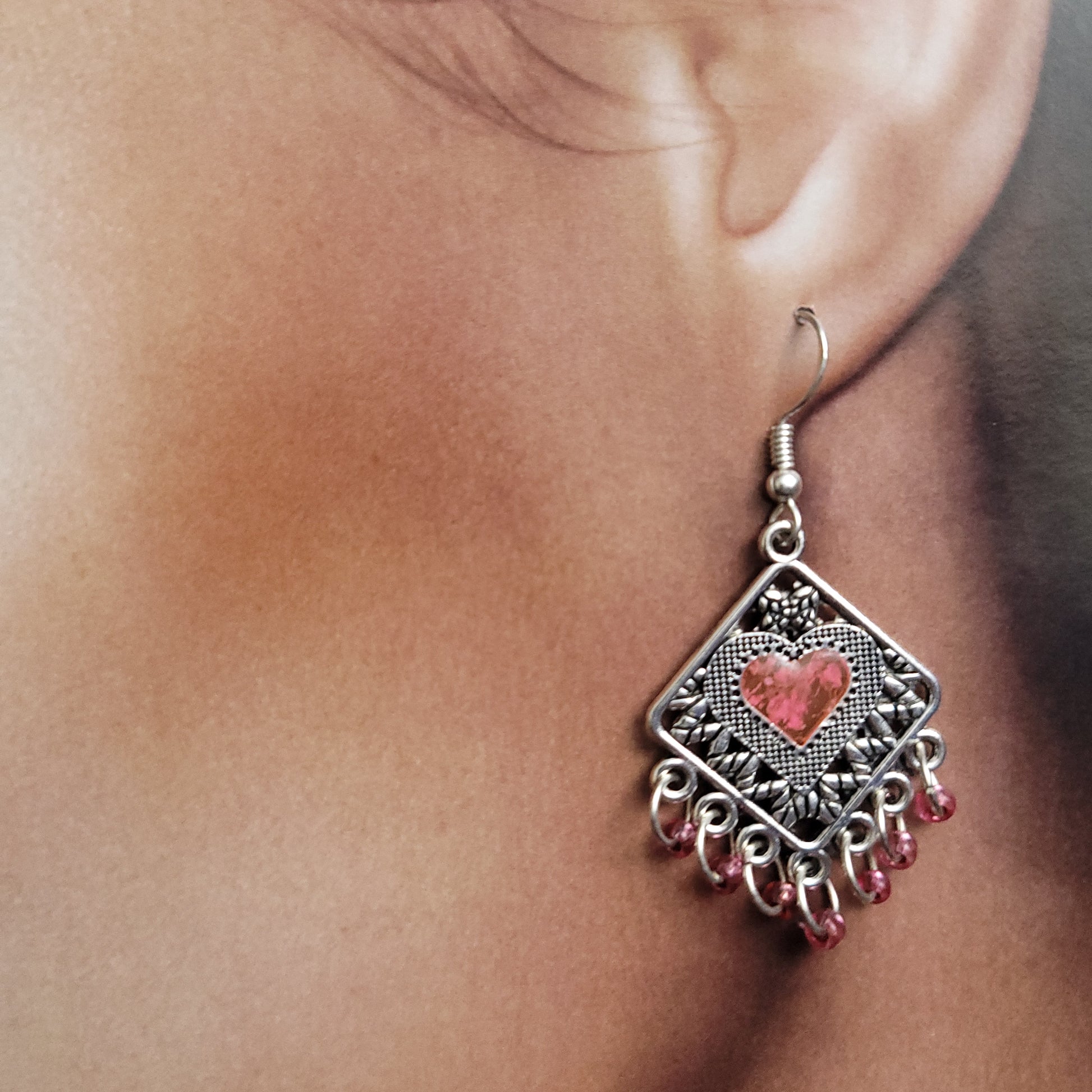 Pink Square heart - resin and glass beads - 5.1cm