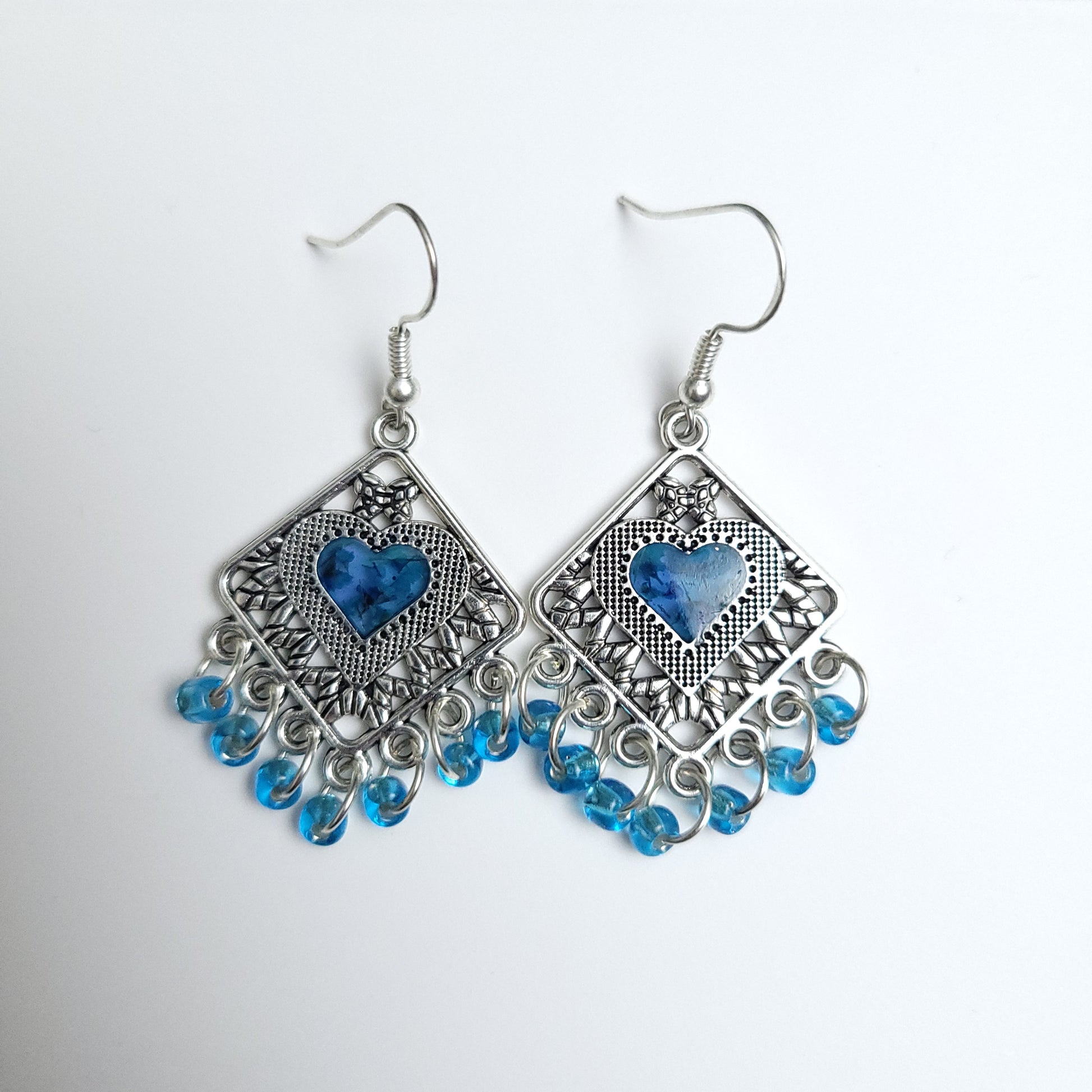 Blue Square heart - resin and glass beads - 5.1cm