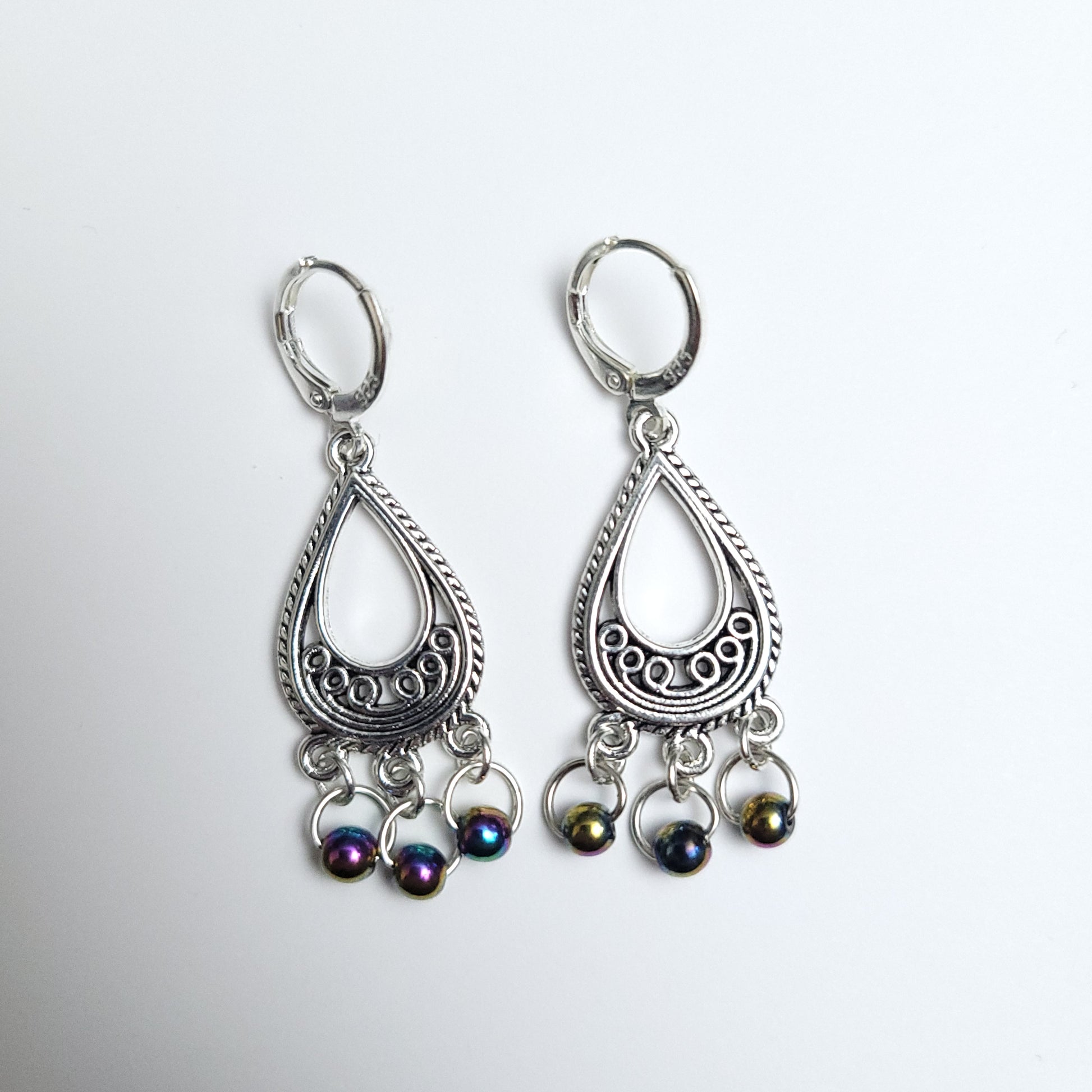 Tear Drop - rainbow hematite beads - 4.5cm