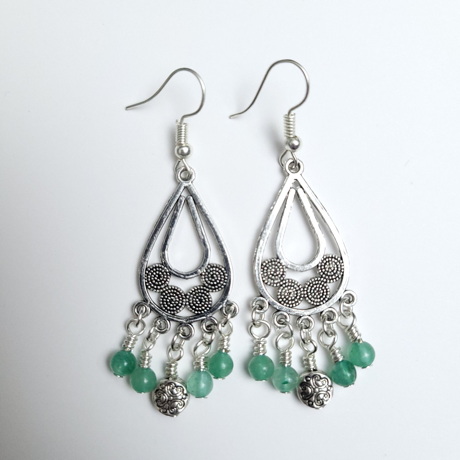 Teardrop - Green aventurine and metal beads - 6cm