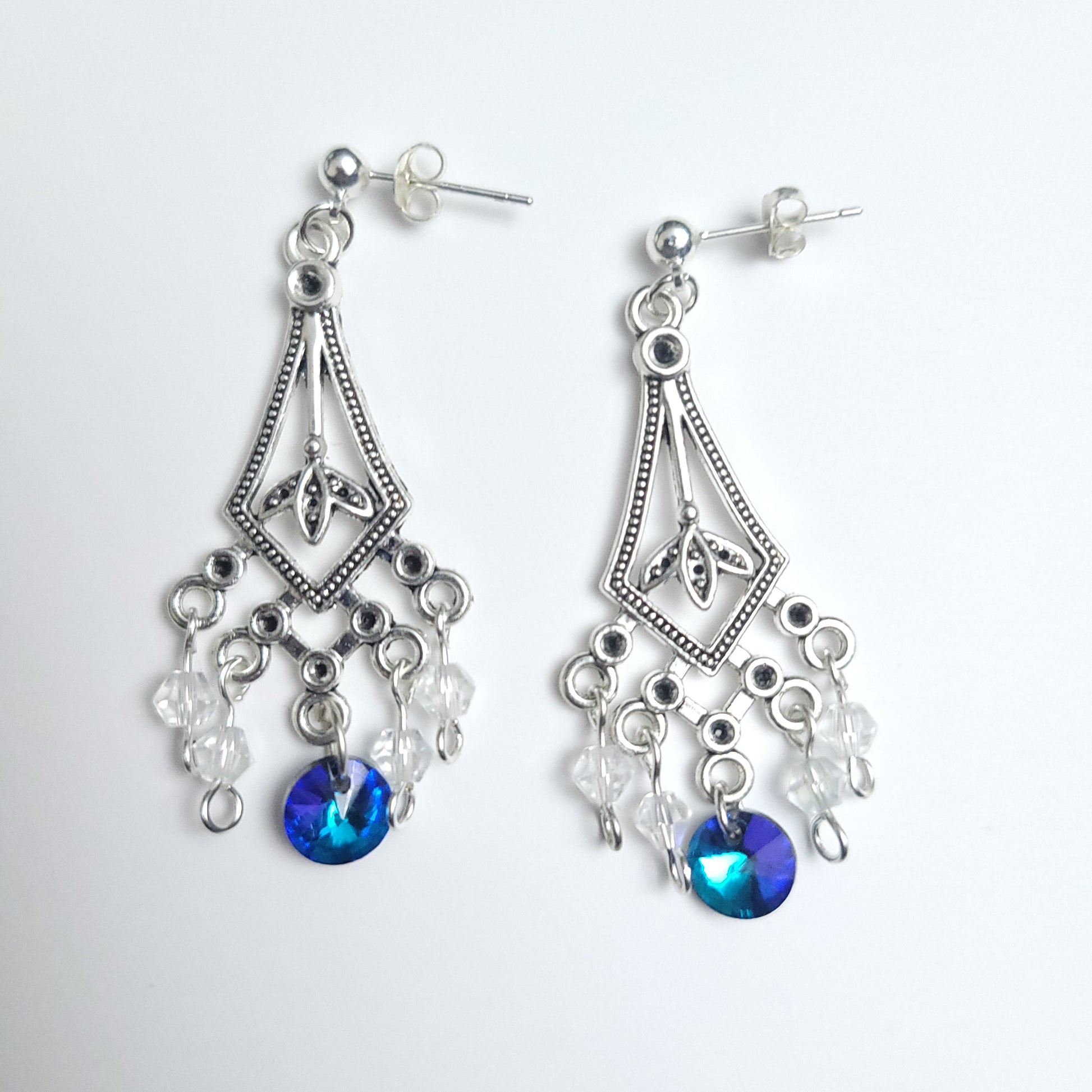 Triangle - greeny blue crystal beads - 5.9cm
