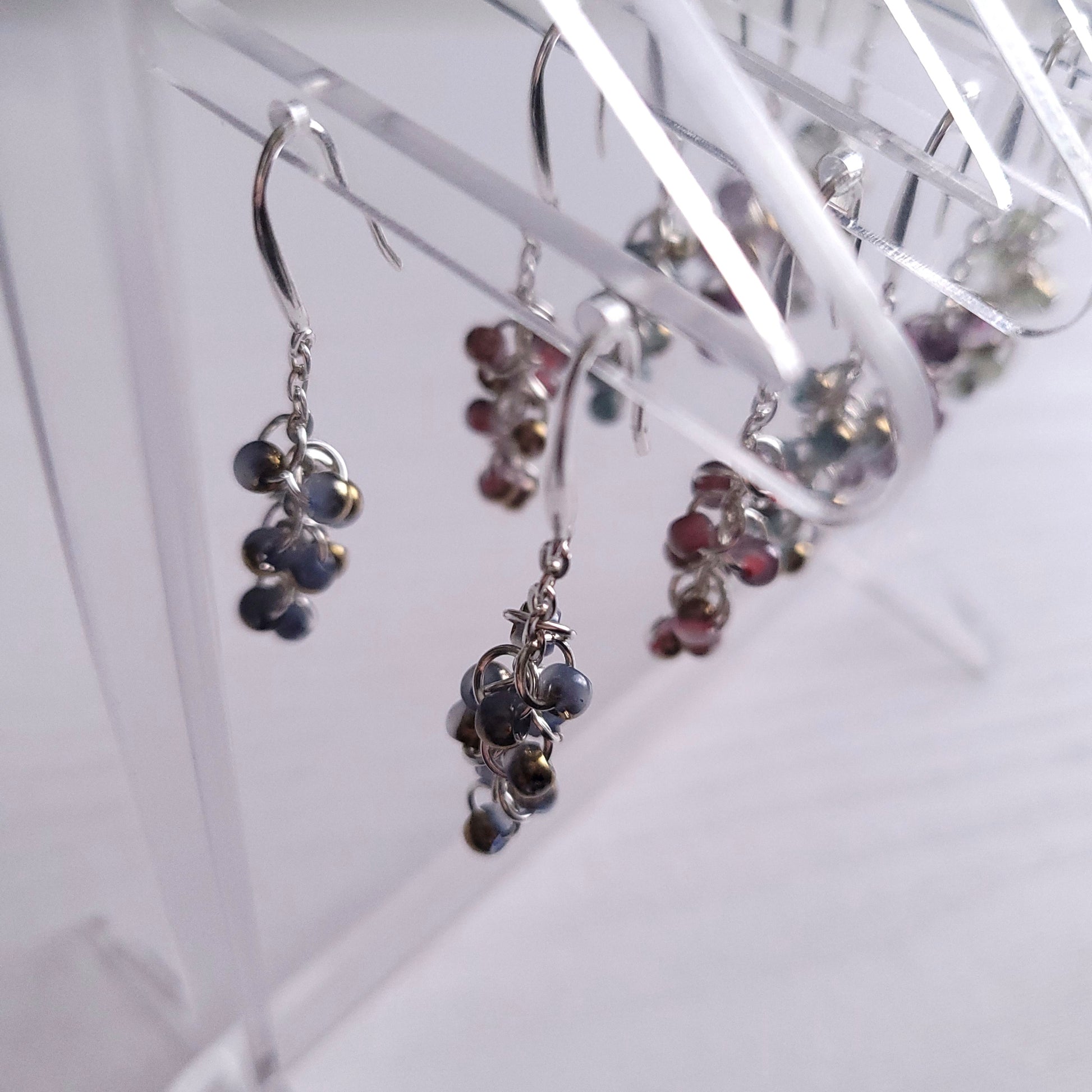 Coloured Bronze Accent Beaded Dangle Silver earrings (multiple colour combos)