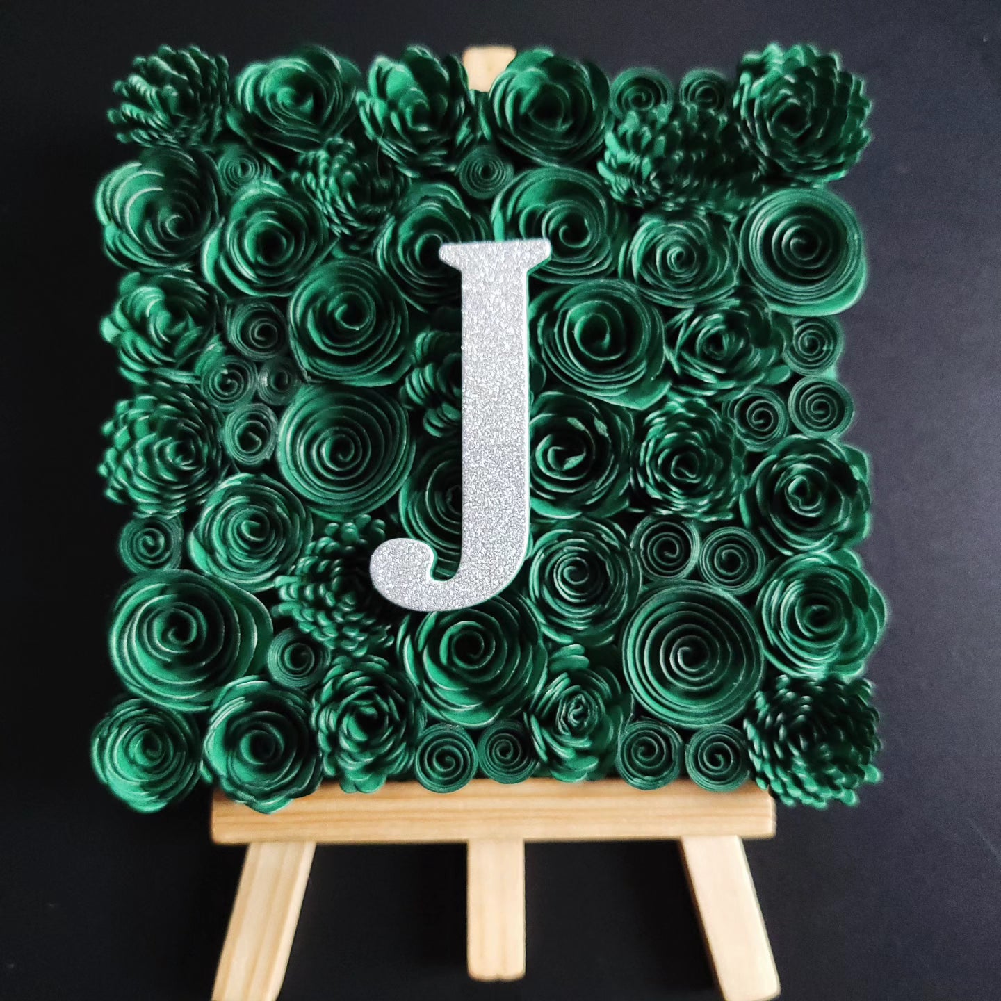 Silver Glitter Letter | Customisable Mini Easel Paper Flower Cutout Letter Canvas