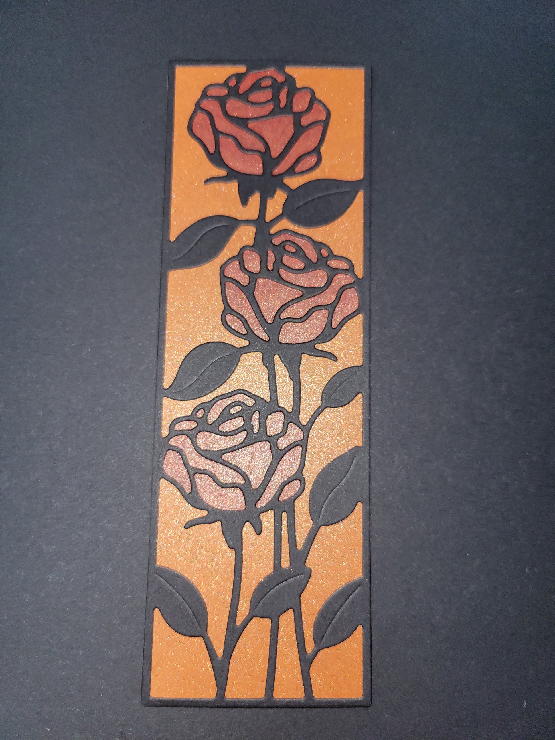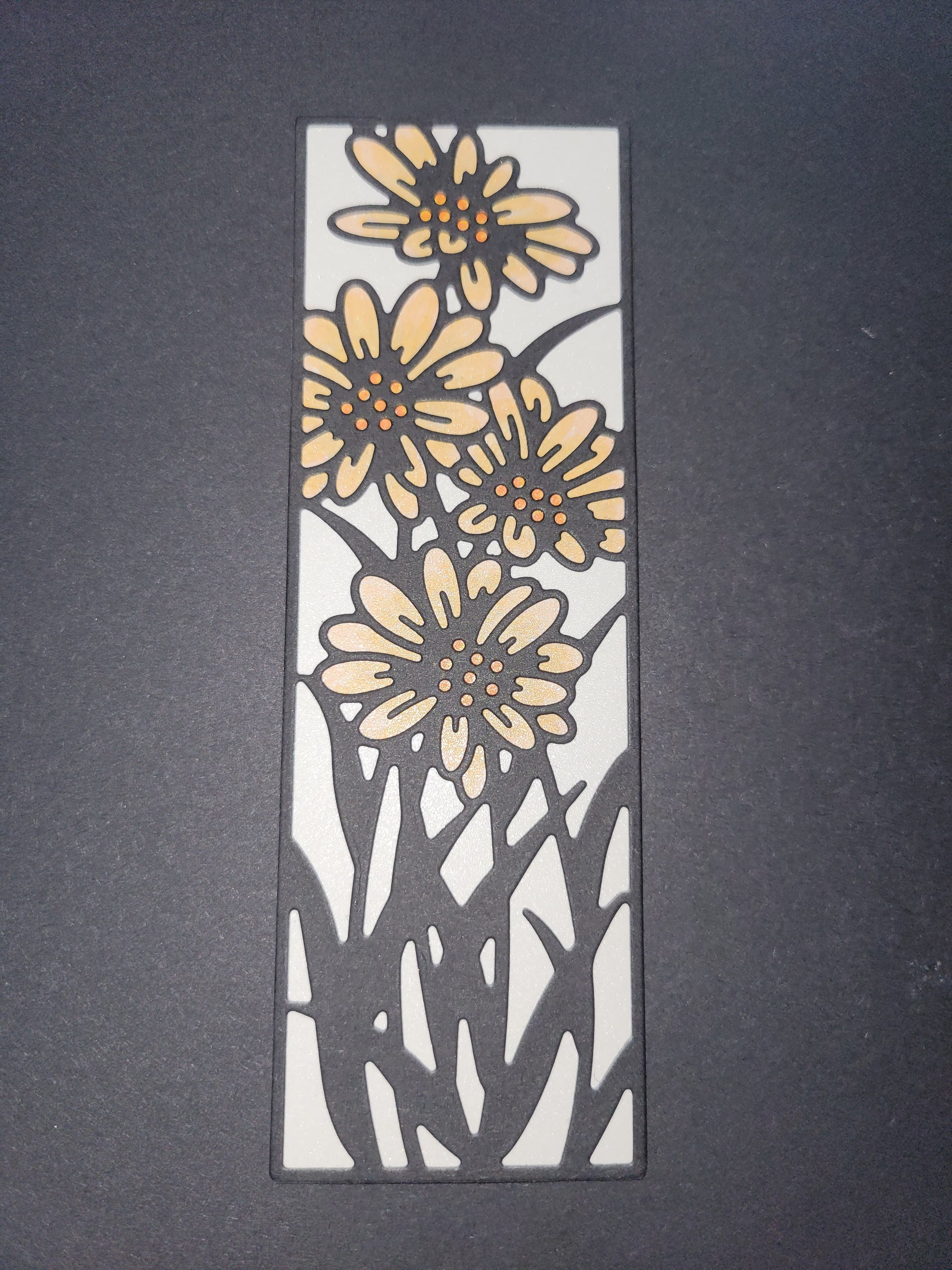 1 x Flower cutout shadow bookmark with hand coloured details on pearl card