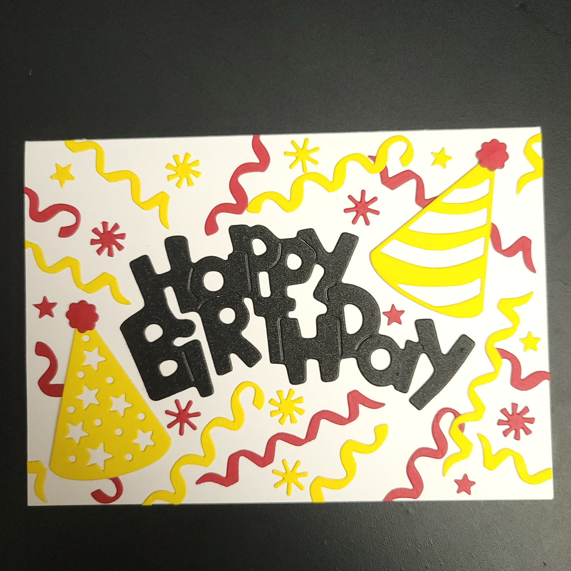 Two colour cutout designs with black glitter card Happy Birthday cutout