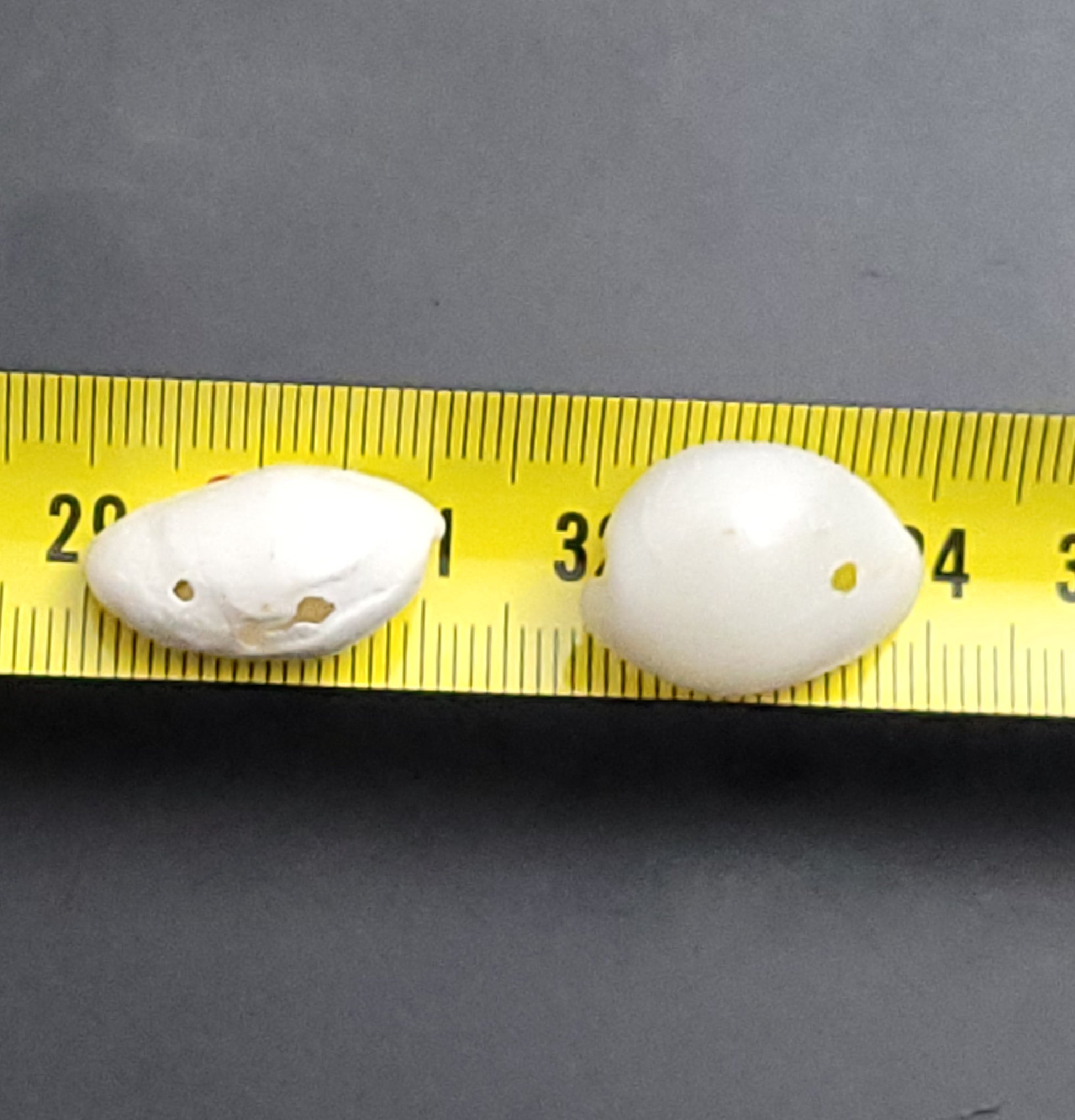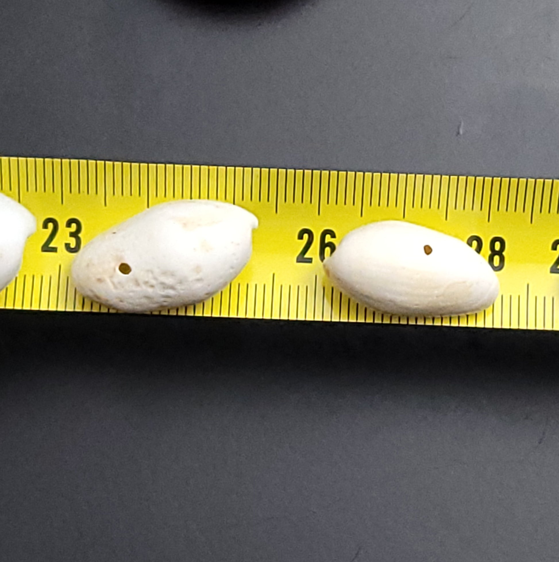 8 x small size - variety of sizes of natural drilled shells (made into beads) see photo of random beads put onto tape measure for sizes of all