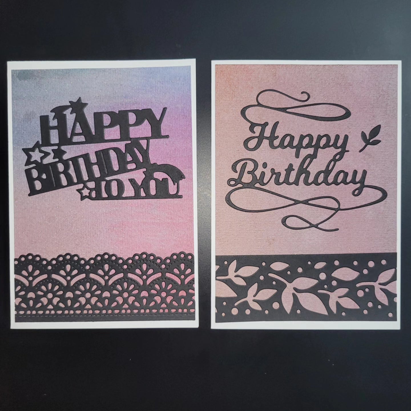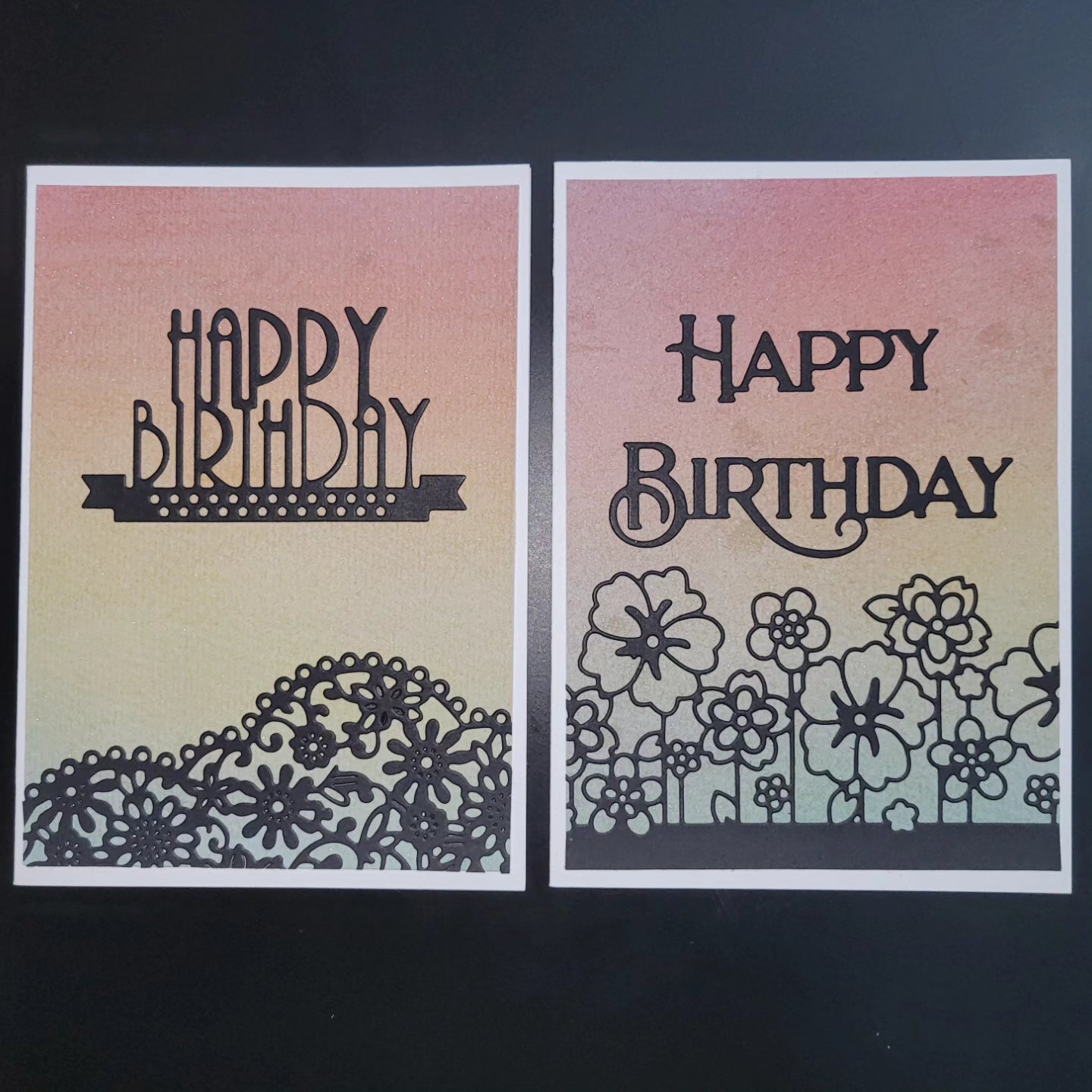 Set of 2 A6 watercolour silhouette blank Happy Birthday cards