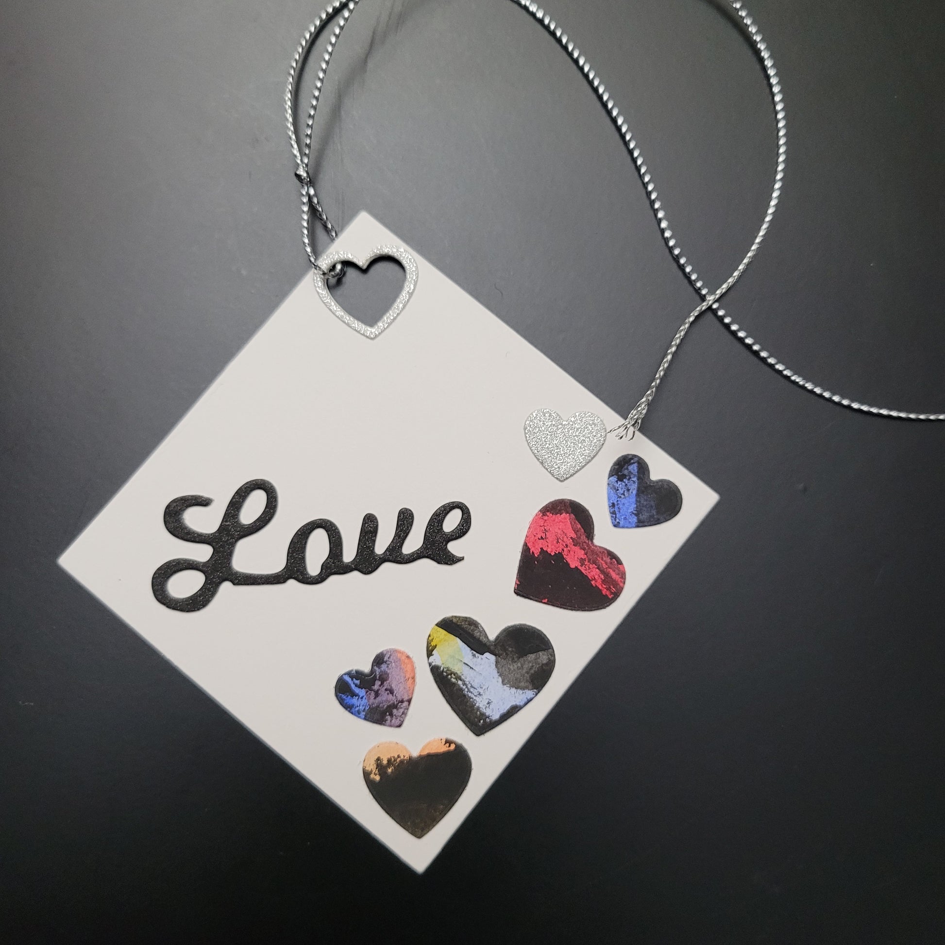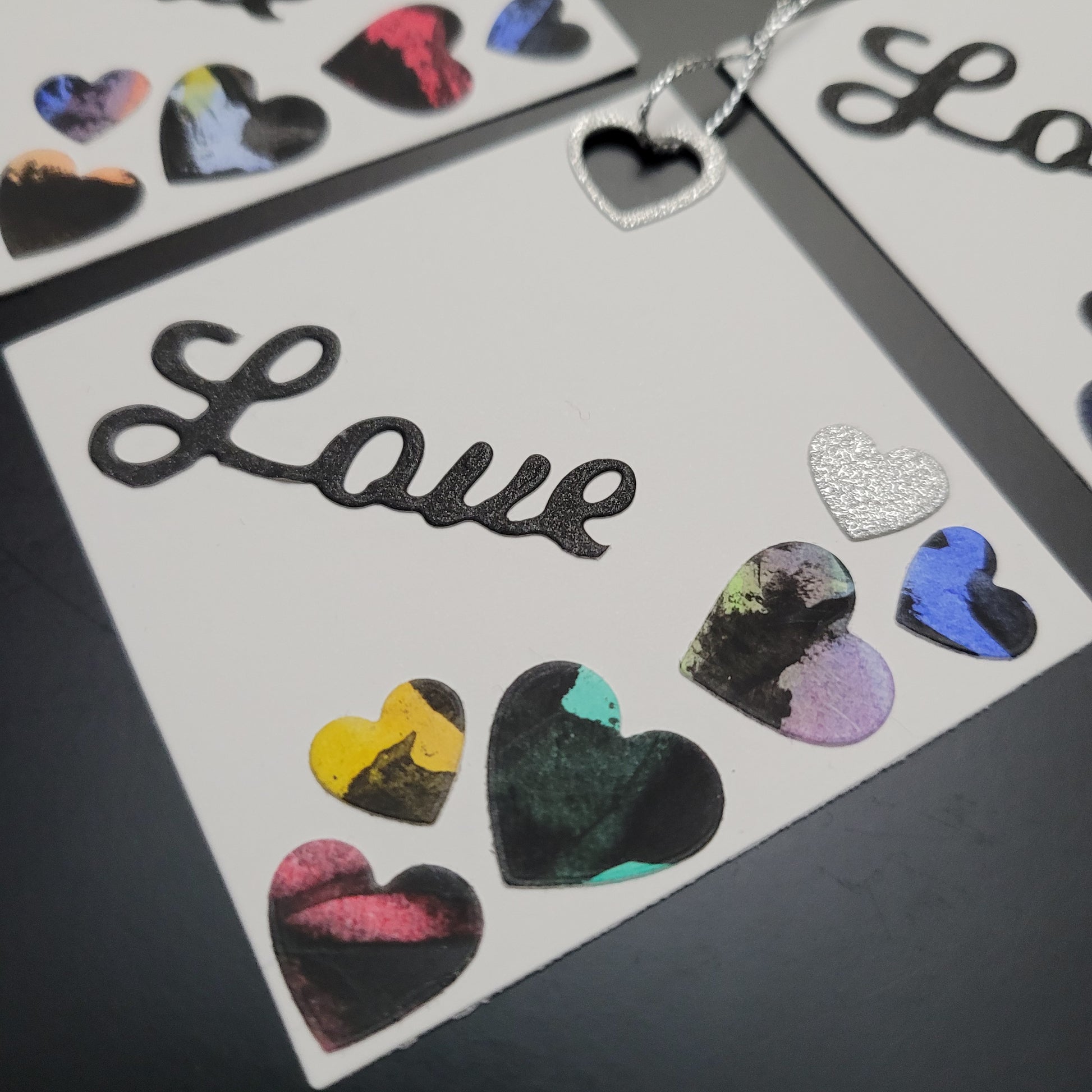 1x Square Diamond Painted Hearts & love cutouts gift tag.
